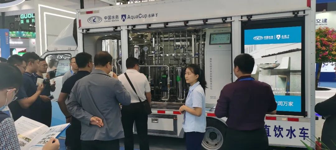 本次展會,中國水務集團展示了一系列創新產品,包括中央凈水設備、直飲水管理系統、智能商務直飲機、超濾膜、納濾膜以及由南京水杯子專項研發的應急直飲水車等。